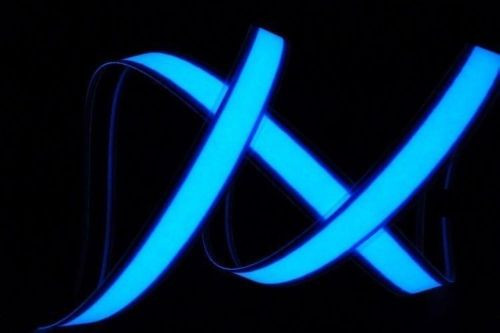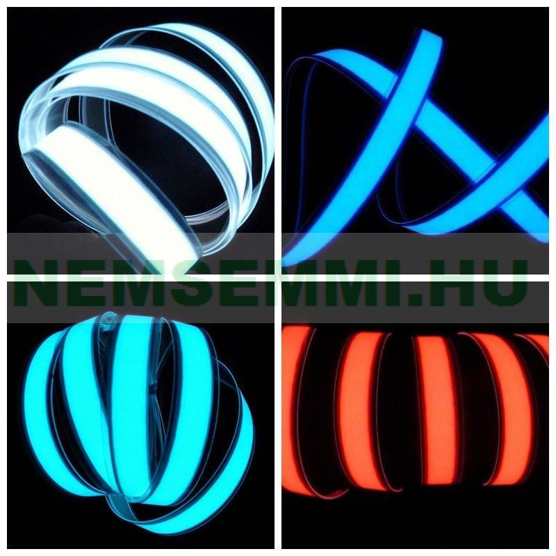 Világító fólia szalag 12 cm hosszú 12 voltos, vágható, lukasztható, ragasztható hideg KÉK szín - elektrolumineszcens fólia