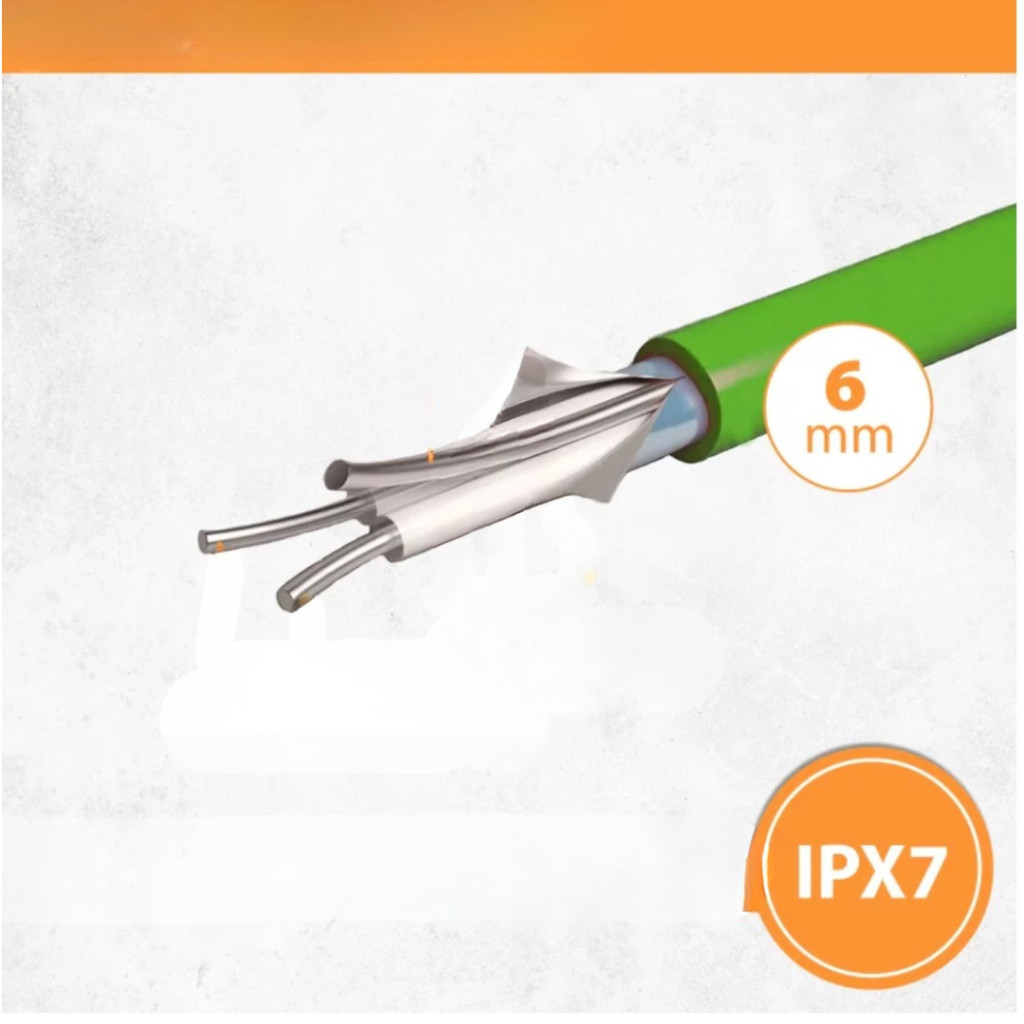 A védővezető fonattal ellátott kábel és a magas IPX7 védettségi besorolás lehetővé teszi, hogy a rendszer fürdőszobákban és egyéb nedves környezetben is biztonságosan alkalmazható legyen. Megfelelő termosztáttal kombinálva egy precízen szabályozható, energiatakarékos és komfortos padlófűtési rendszer hozható létre.