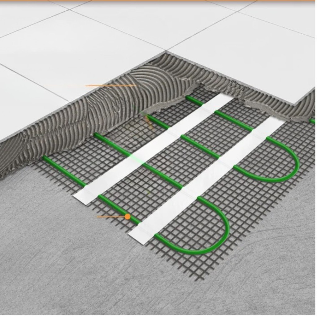 A fűtőszőnyeg alacsony beépítési magasságának köszönhetően közvetlenül a burkolat alá telepíthető, például csemperagasztóba, önterülő aljzatkiegyenlítőbe vagy habarcsrétegbe. Kifejezetten ajánlott hidegburkolatok – csempe, gránit, terméskő – alá, ahol maximális hatékonysággal adja át a hőt.