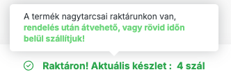 A rendelésre státuszú termékeink esetén a megrendeléseket külső raktárból tároljuk be nagytarcsai raktárunkba, és az átfutási vagy gyártási idő termékenként változik. Amennyiben rendelése sürgős lenne, úgy kérjük, hogy a kategória szűrőnél használja a „Raktáron” szűrést, mely naprakész információkkal szolgál Önnek, vagy helyettesítő termék ajánlásának kérésével forduljon ügyfélszolgálatunkhoz.