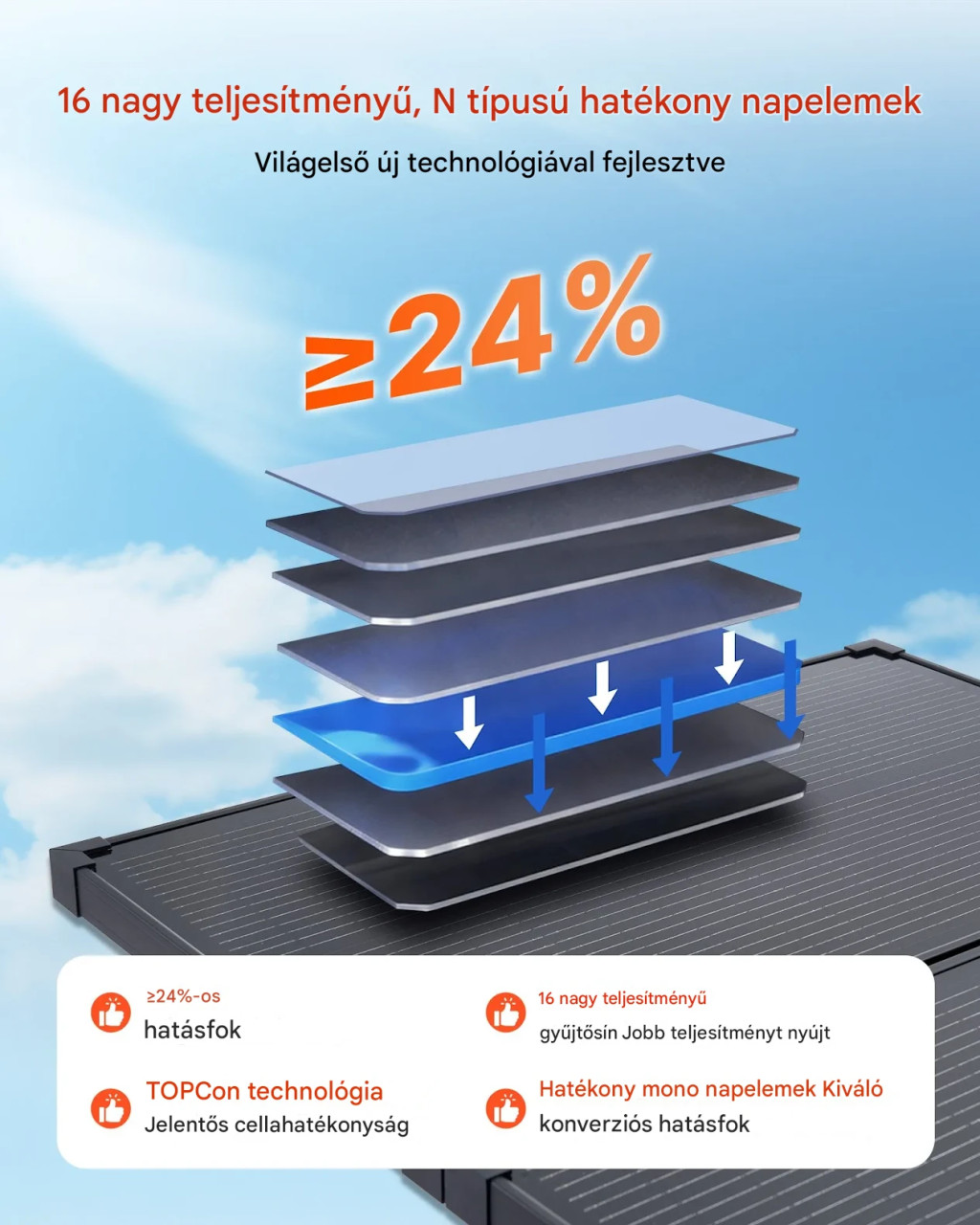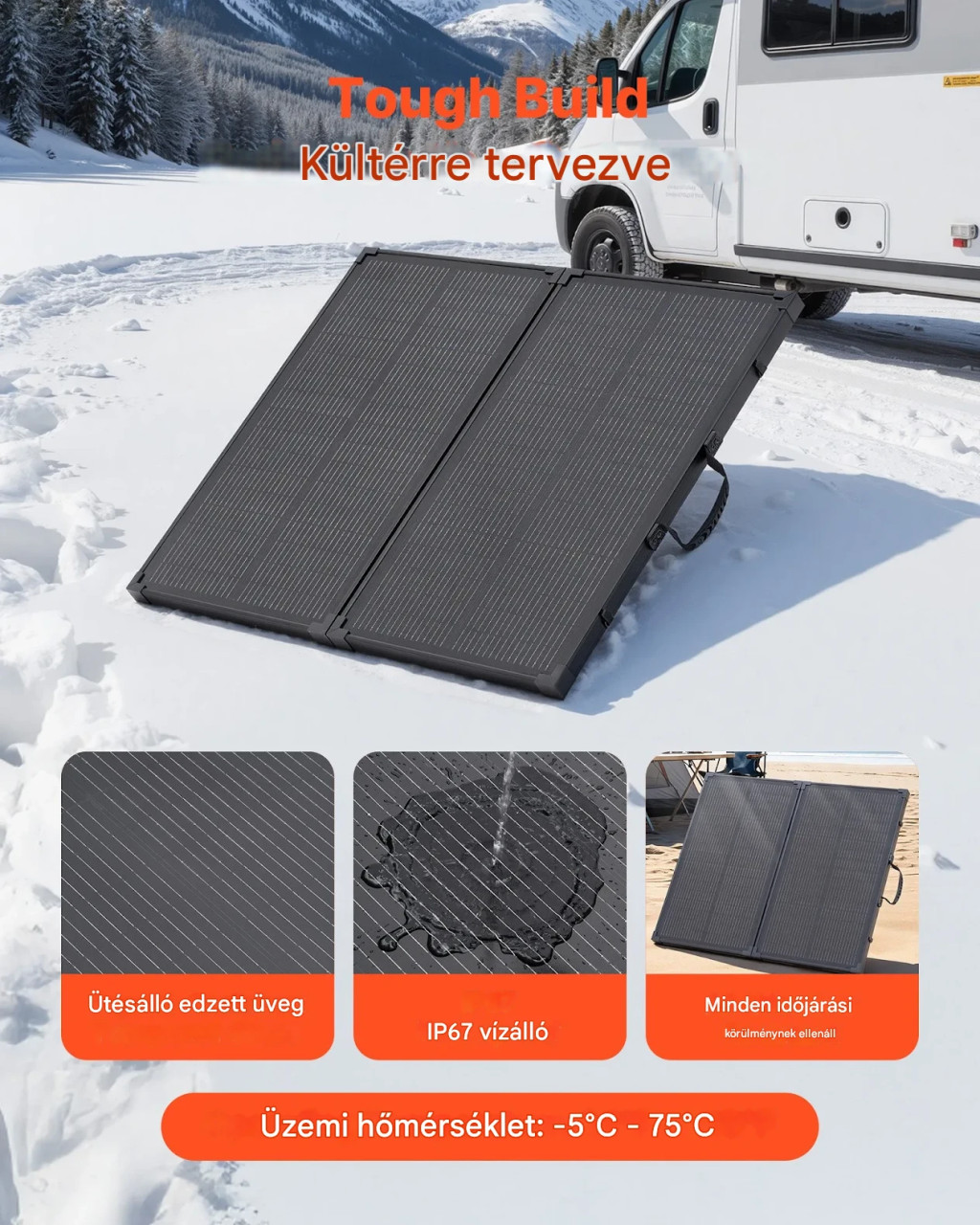 • Típus: Összecsukható monokristályos napelem (keretes)