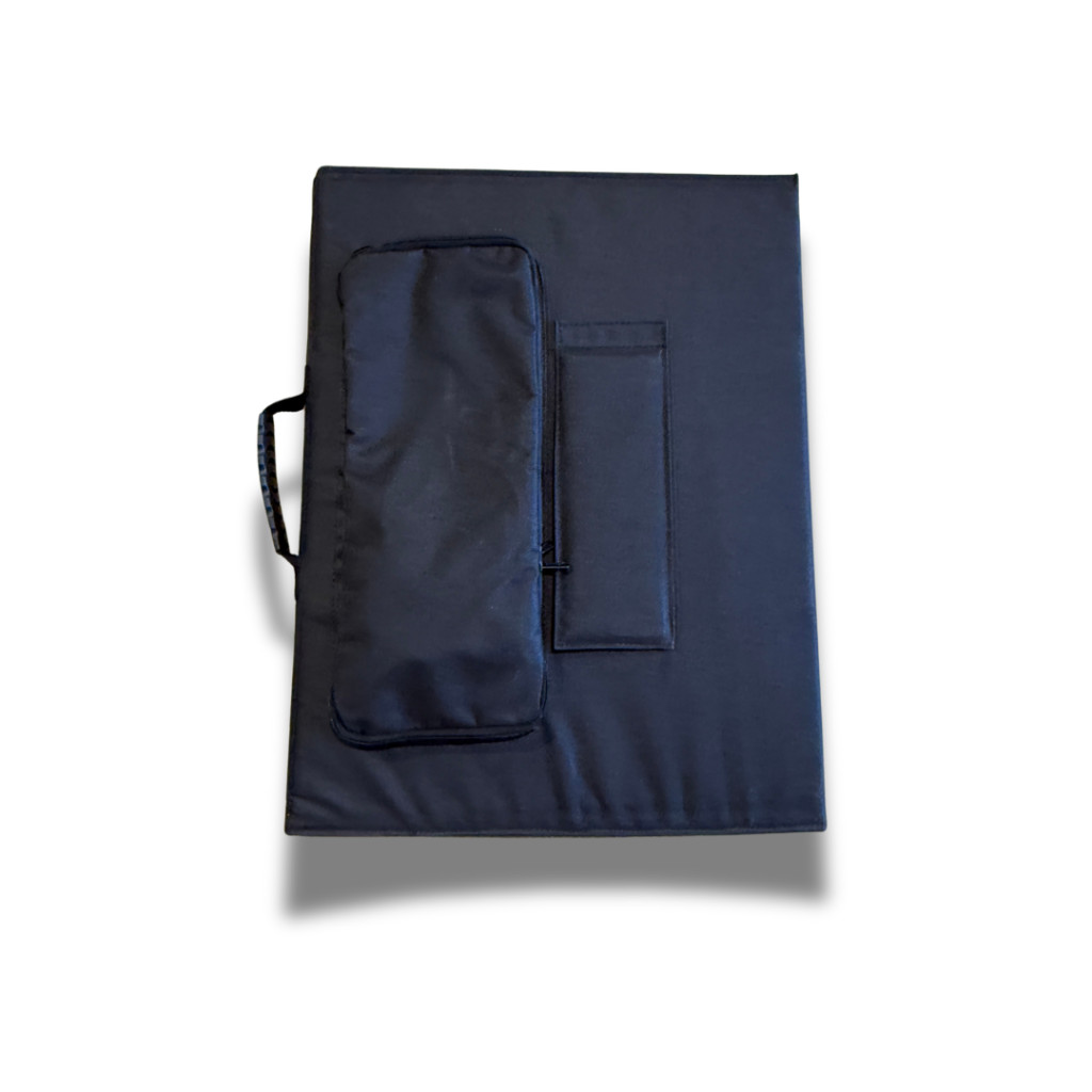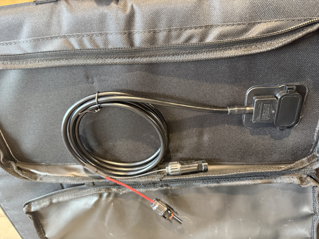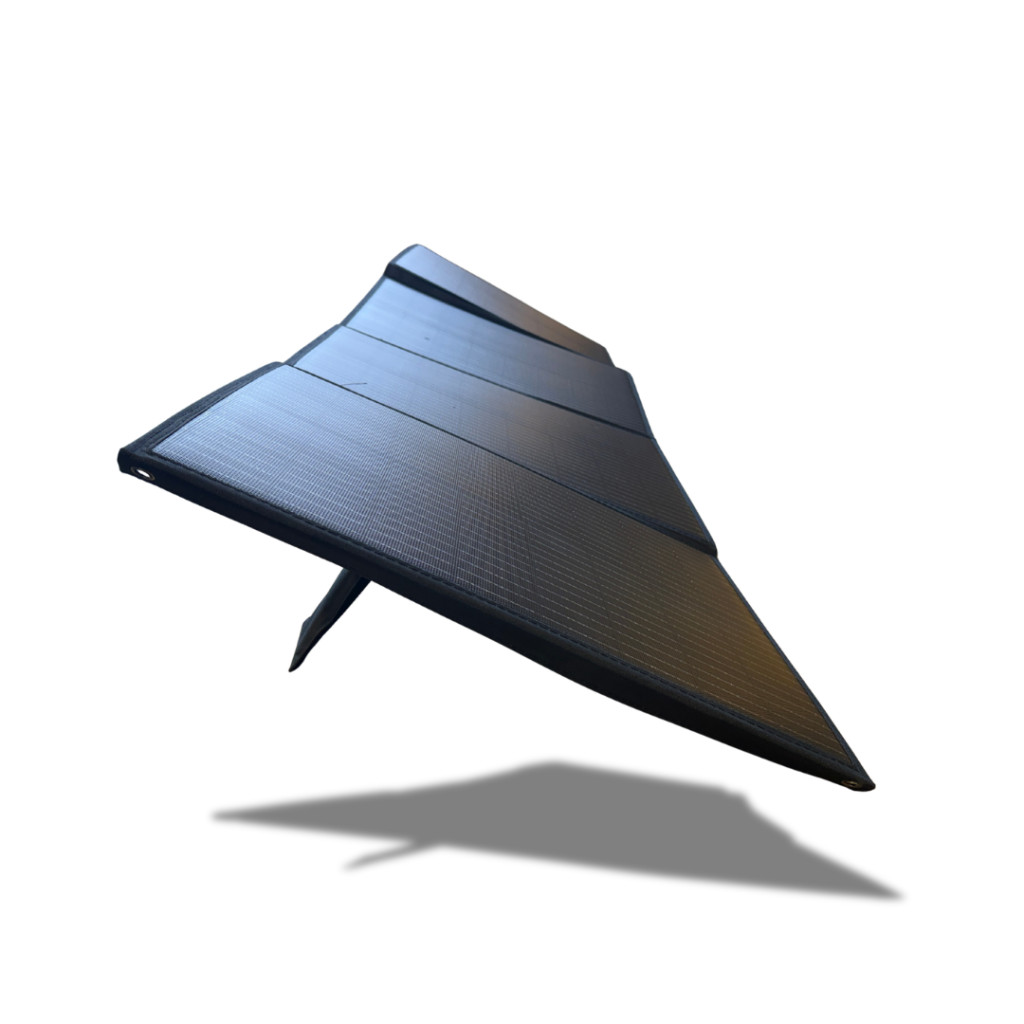 A napelem egy könnyű táskává van összehajtva.