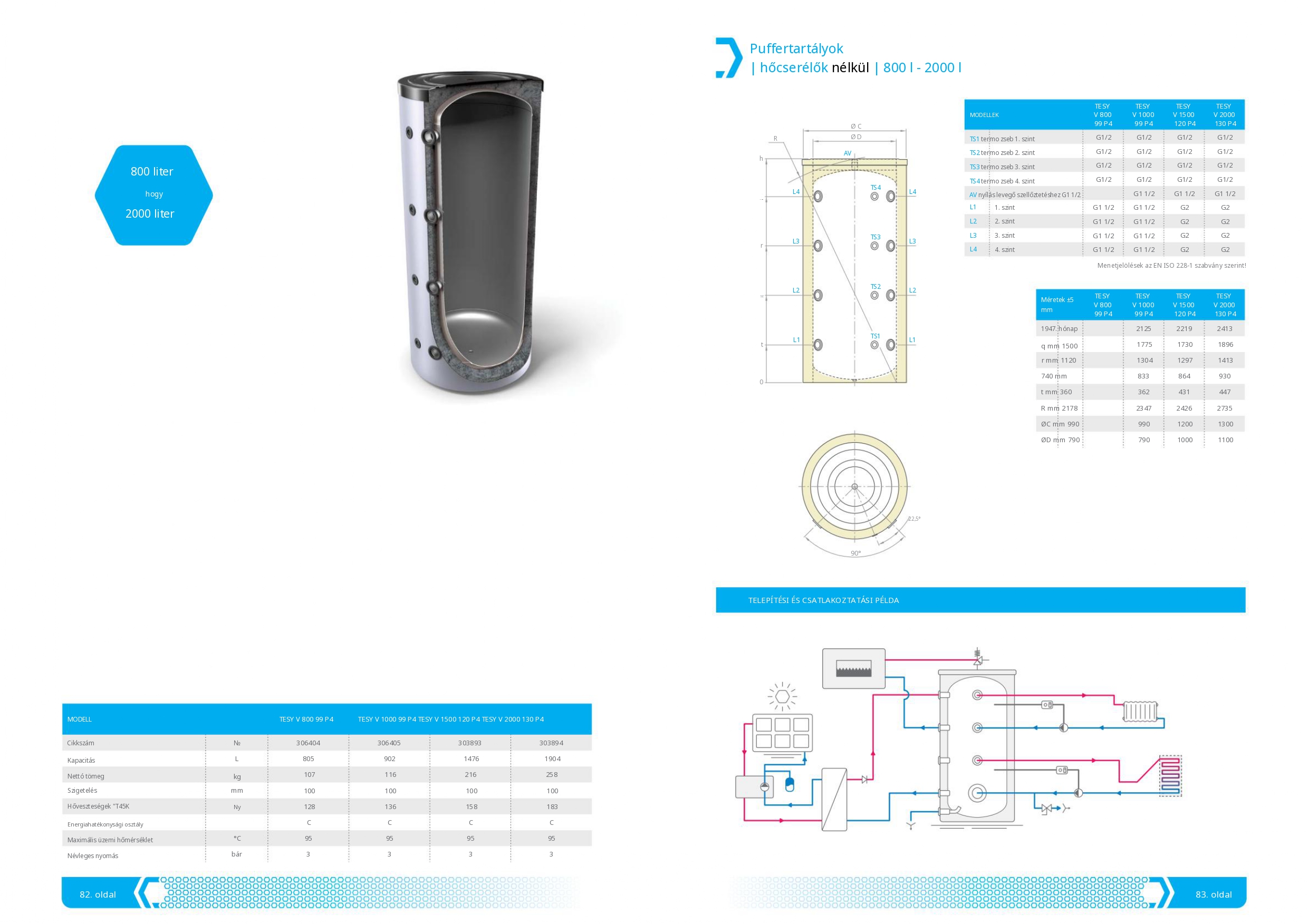 Fűtési 2000 literes Tesy puffer tártály hőcserélő nélkül hőszigetelt melegvíz tárolás céljára ERP C energiaosztály