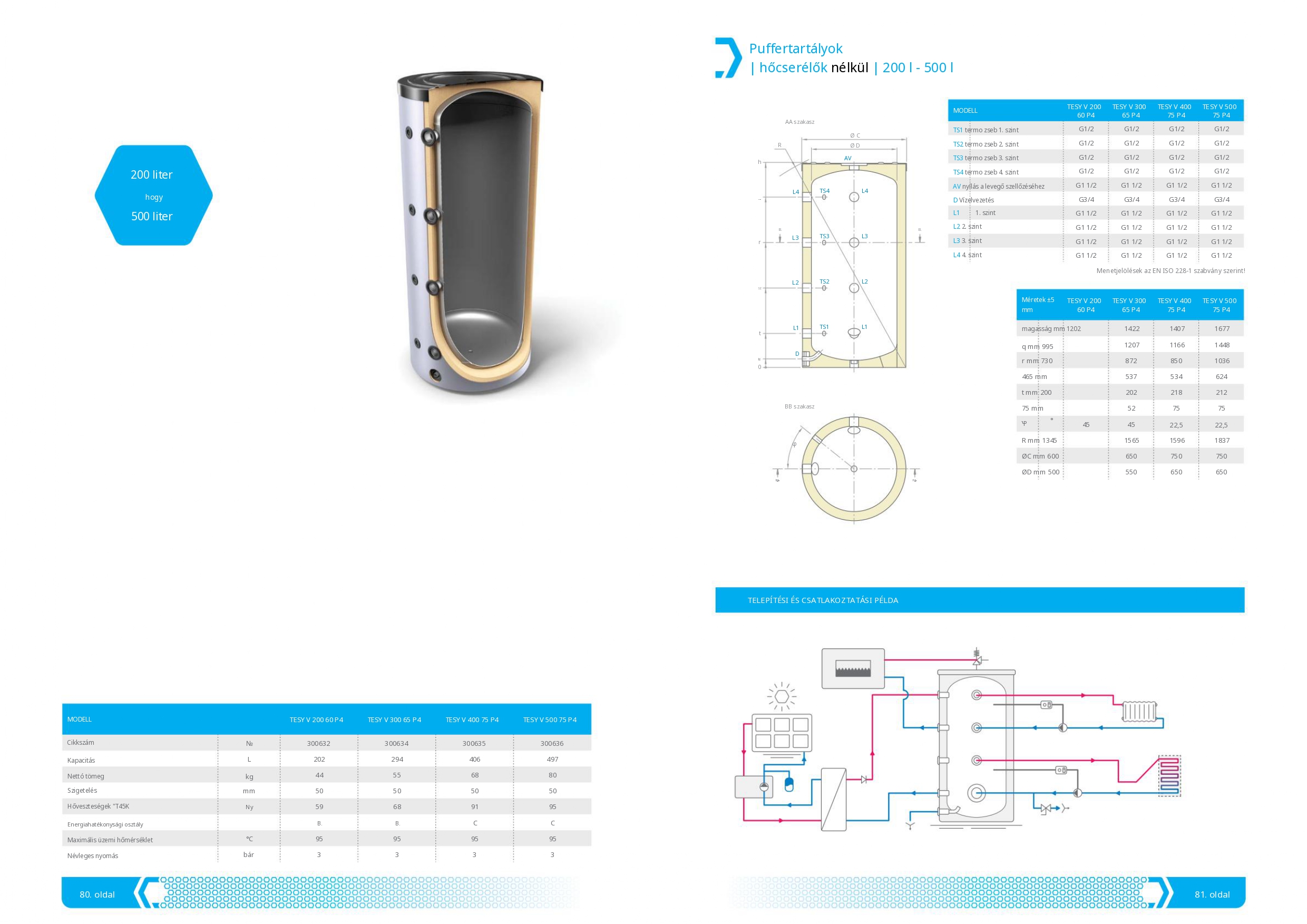 Fűtési 200 literes Tesy puffertartály hőcserélő nélkül – fűtési rendszerekhez, 3 bar nyomás, B energiaosztály, PU habszigeteléssel