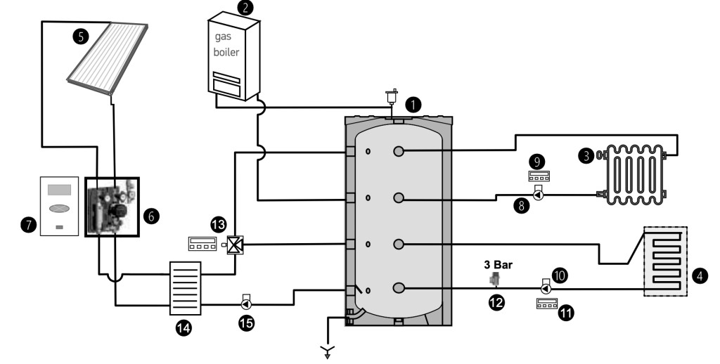 Két hőcserélős puffertartály - 1500 literes tartály, melegvíz tárolás céljára 110 °C maximális üzemi hőmérséklettel