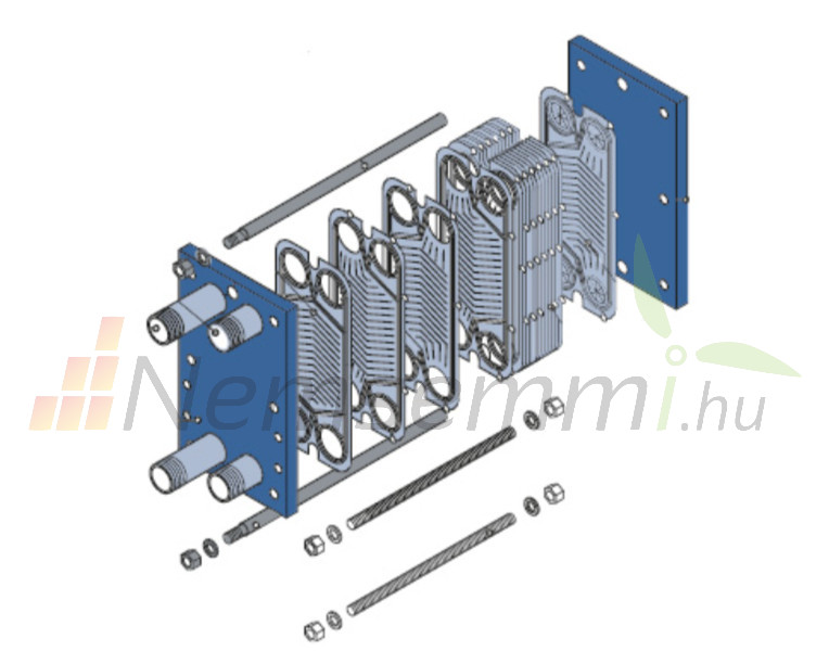 Szerelt moduláris lemezes hőcserélő 59 lemezes PHC 2030 - DN32 csatlakozás EPDM tömítés
