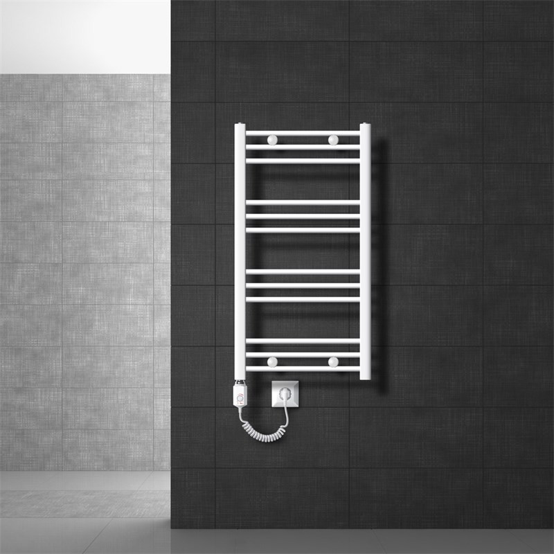 Törölközőszárító radiátor 500x800 mm egysoros - ívelt fehér 600W fűtőbetéttel szélső bekötéssel