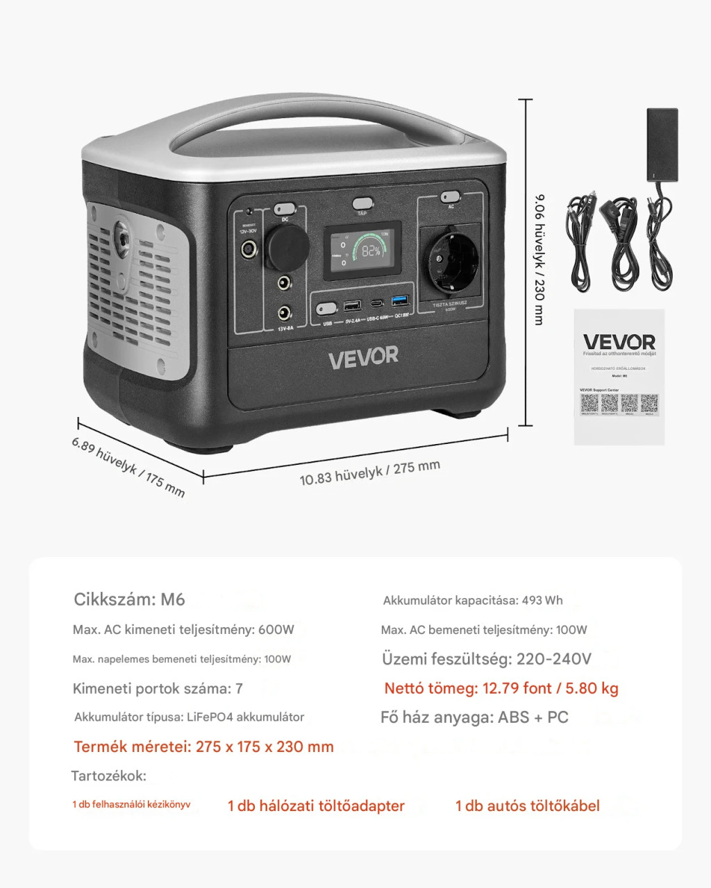 • AC kimeneti teljesítmény: 600 W