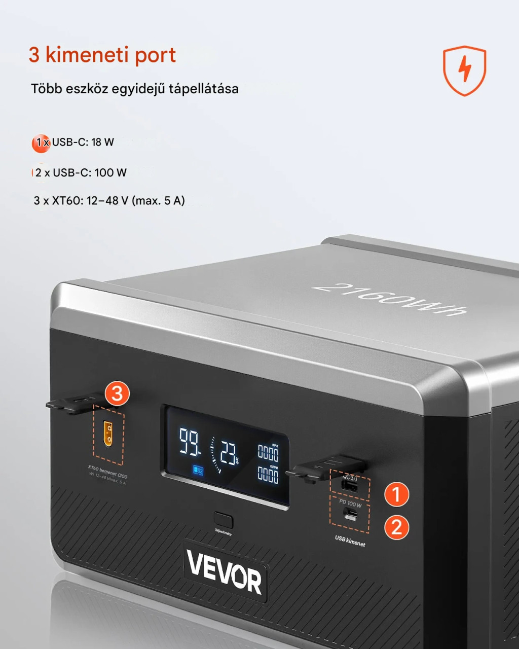 Hordozható erőmű kiegészítő akkumulátor 2160 Wh bővítő akkumulátor 3 porttal