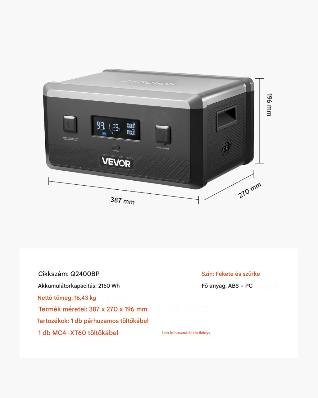 Hordozható erőmű kiegészítő akkumulátor 2160 Wh