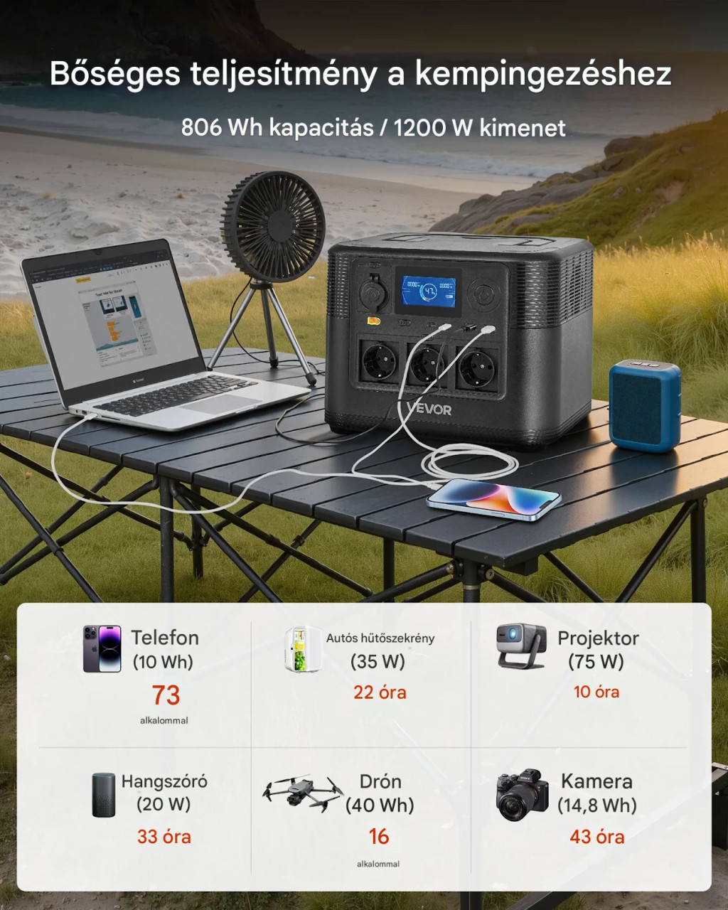 Ez a 1200 W teljesítményű hordozható erőmű ideális választás, ha kompakt, mégis erős mobil energiaforrást keres mindennapi vagy vészhelyzeti használatra. A 806 Wh kapacitású LiFePO4 akkumulátor hosszú élettartamot és stabil működést biztosít, így megbízható társ otthon, utazás közben vagy kültéri tevékenységek során.