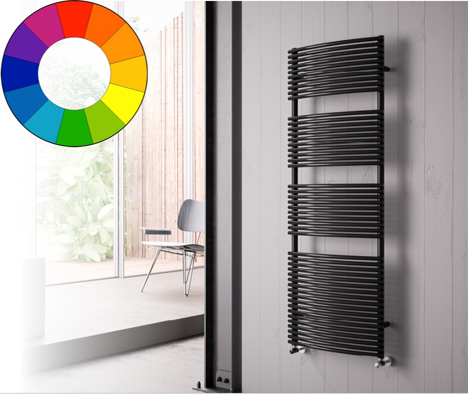 Színes radiátor - Cordivari Brigitte 400x785 fekete design törölközőszárító. Rendelhető fekete piros kék sárga zöld barna lila narancs drapp színben