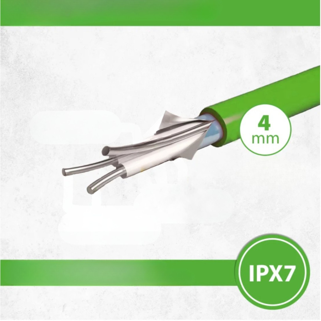 A fűtőkábel védővezető fonattal és magas IPX7 védettségi besorolással rendelkezik, ezért fürdőszobákban és egyéb nedves helyiségekben is biztonságosan alkalmazható. Megfelelő termosztáttal kombinálva egy precízen szabályozható, komfortos és energiatakarékos padlófűtési rendszer alakítható ki.