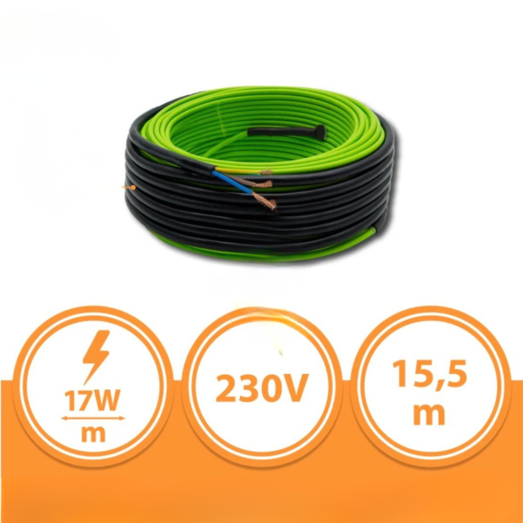 Elektromos fűtőkábel 17W/m 15,5 méter padlófűtéshez esztrichbe építhető fűtőkábel