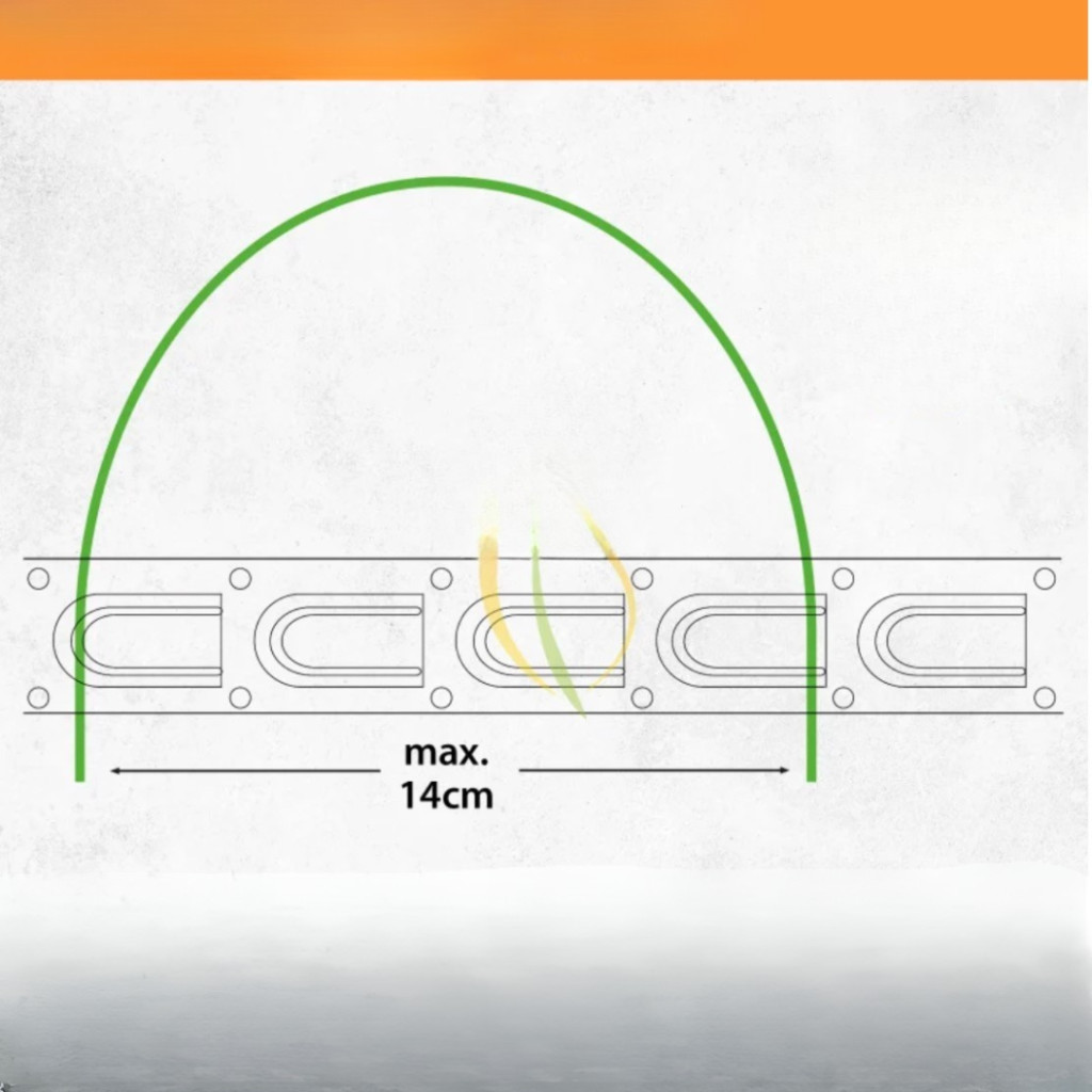 A minimum 7 cm-es távolság betartása elengedhetetlen a biztonságos és hatékony működéshez. A kábel rögzíthető szerelőszalaggal, ragasztószalaggal, ragasztópisztollyal vagy szerelőragsztóval, így összetettebb alaprajzok esetén is könnyen telepíthető.