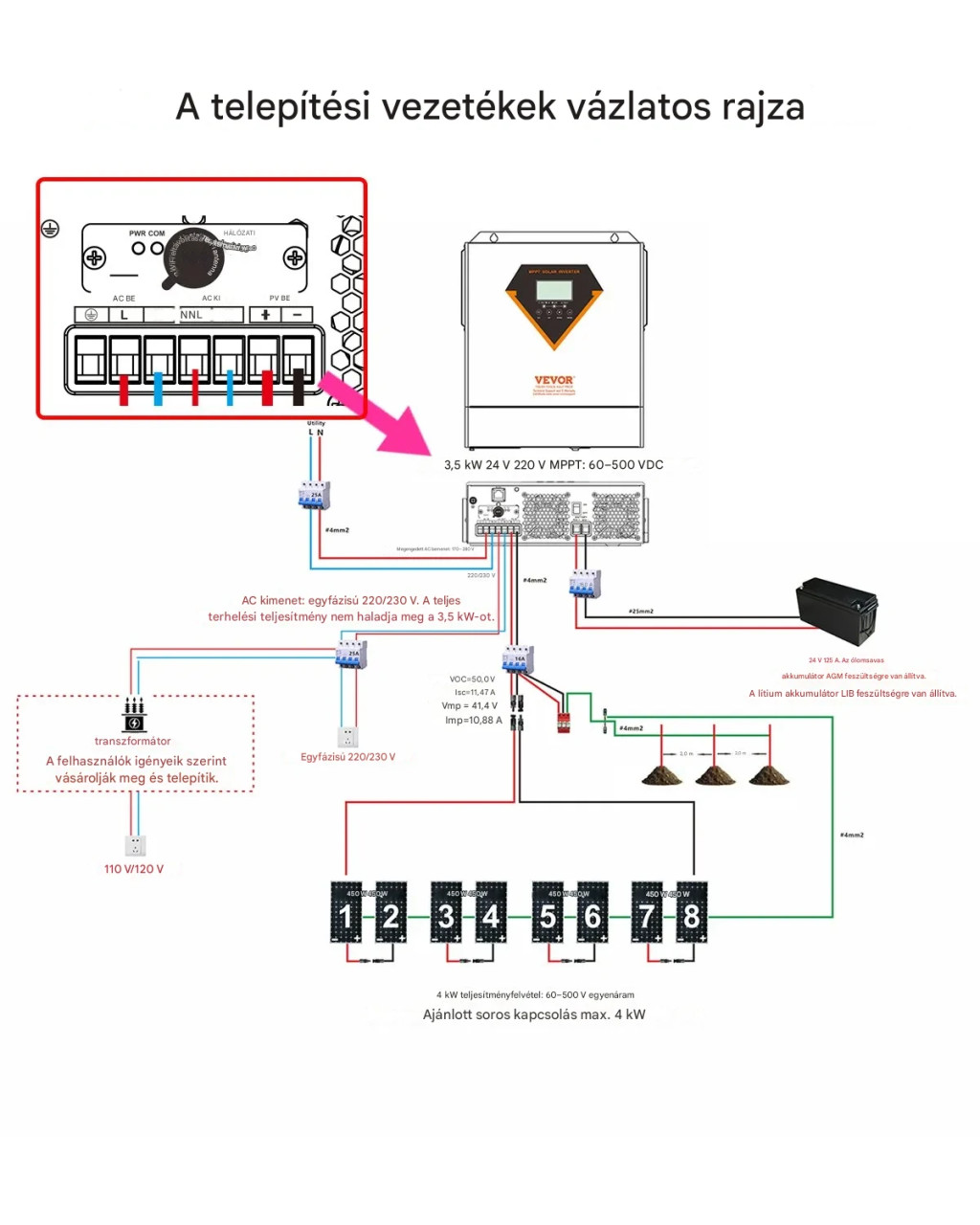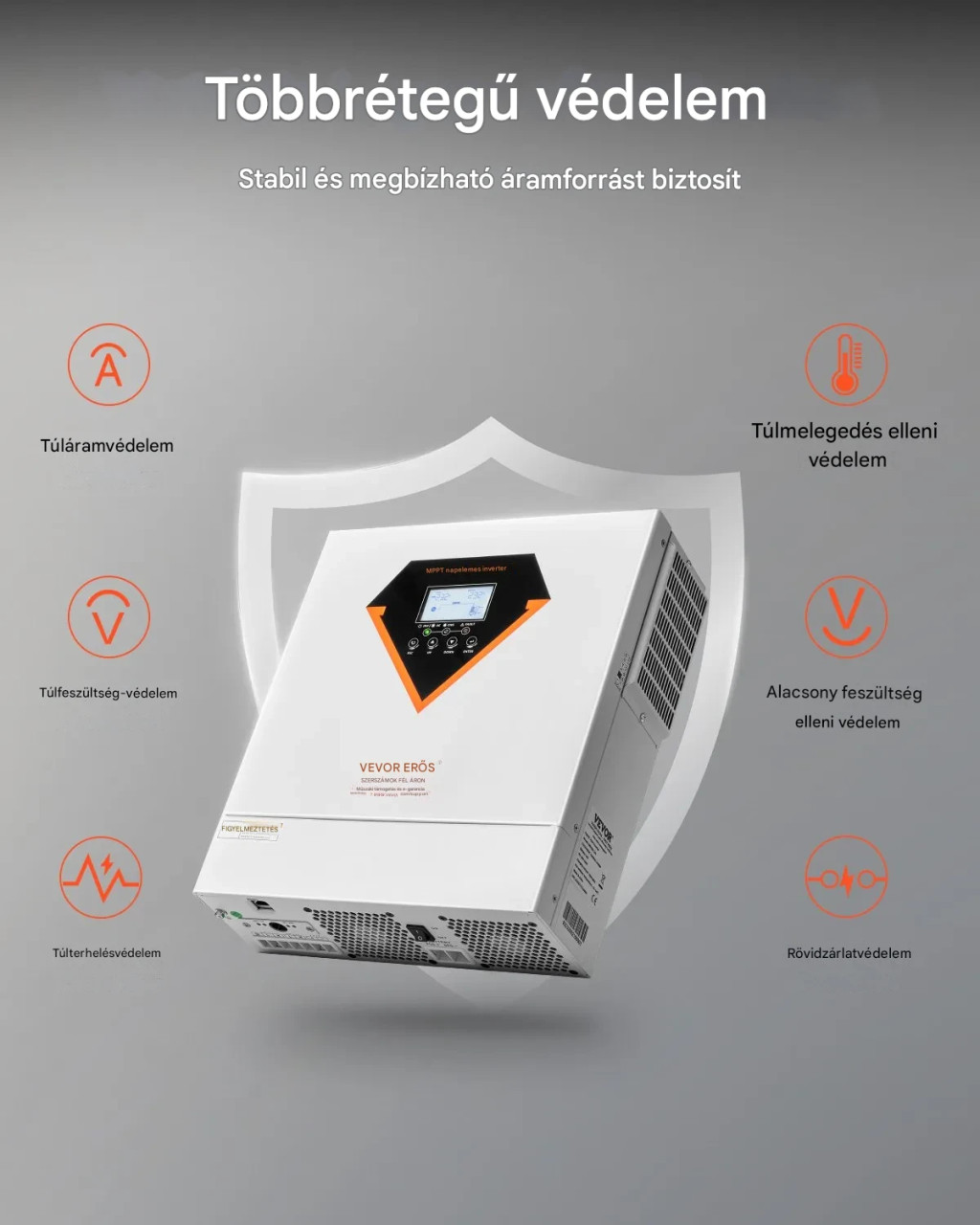 Hibrid napelemes inverter 48V 230V rendszerhez 6000W