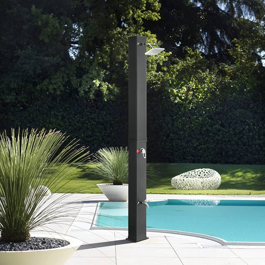 Ez a kültéri szolár zuhany praktikus megoldás mindazok számára, akik kényelmes meleg vizes zuhanyt szeretnének a szabadban, elektromos áram használata nélkül.