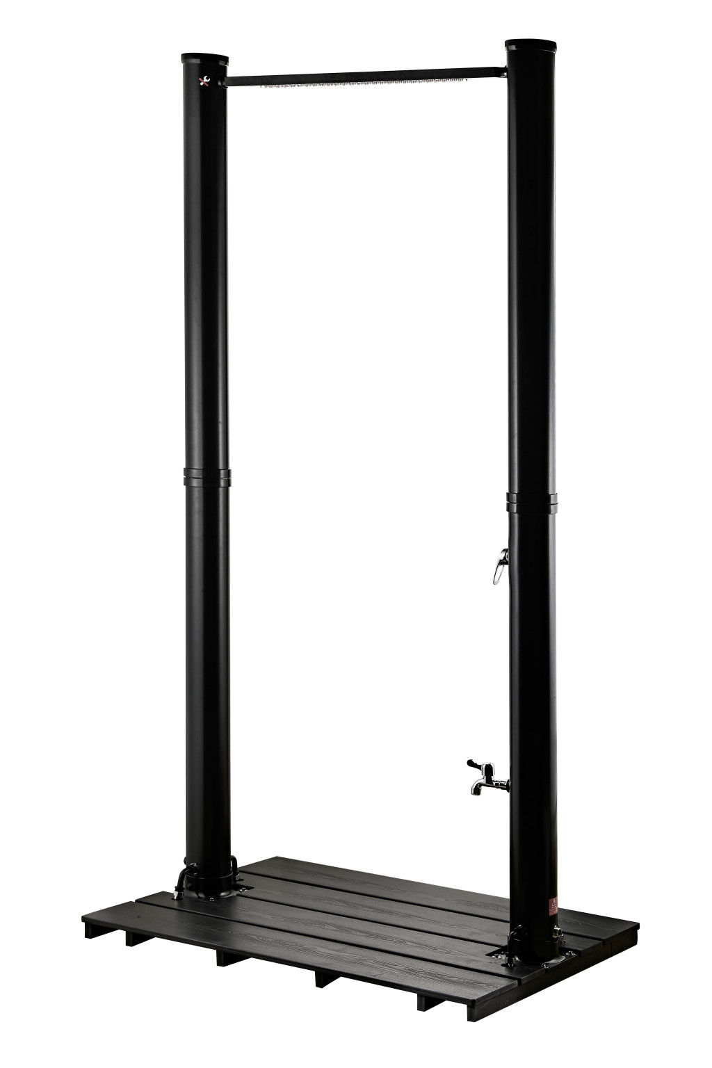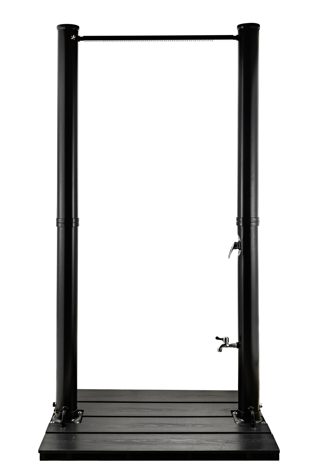Prémium kerti szolár zuhanykapu 40 literes fekete, lábmosócsappal, PVC tartályos kivitel