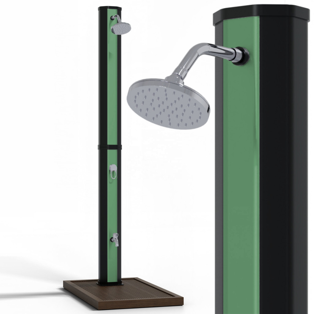 Szolár kerti zuhany, 40l zöld-fekete szín lábzuhannyal és esőztető fejjel, PVC zuhanytest