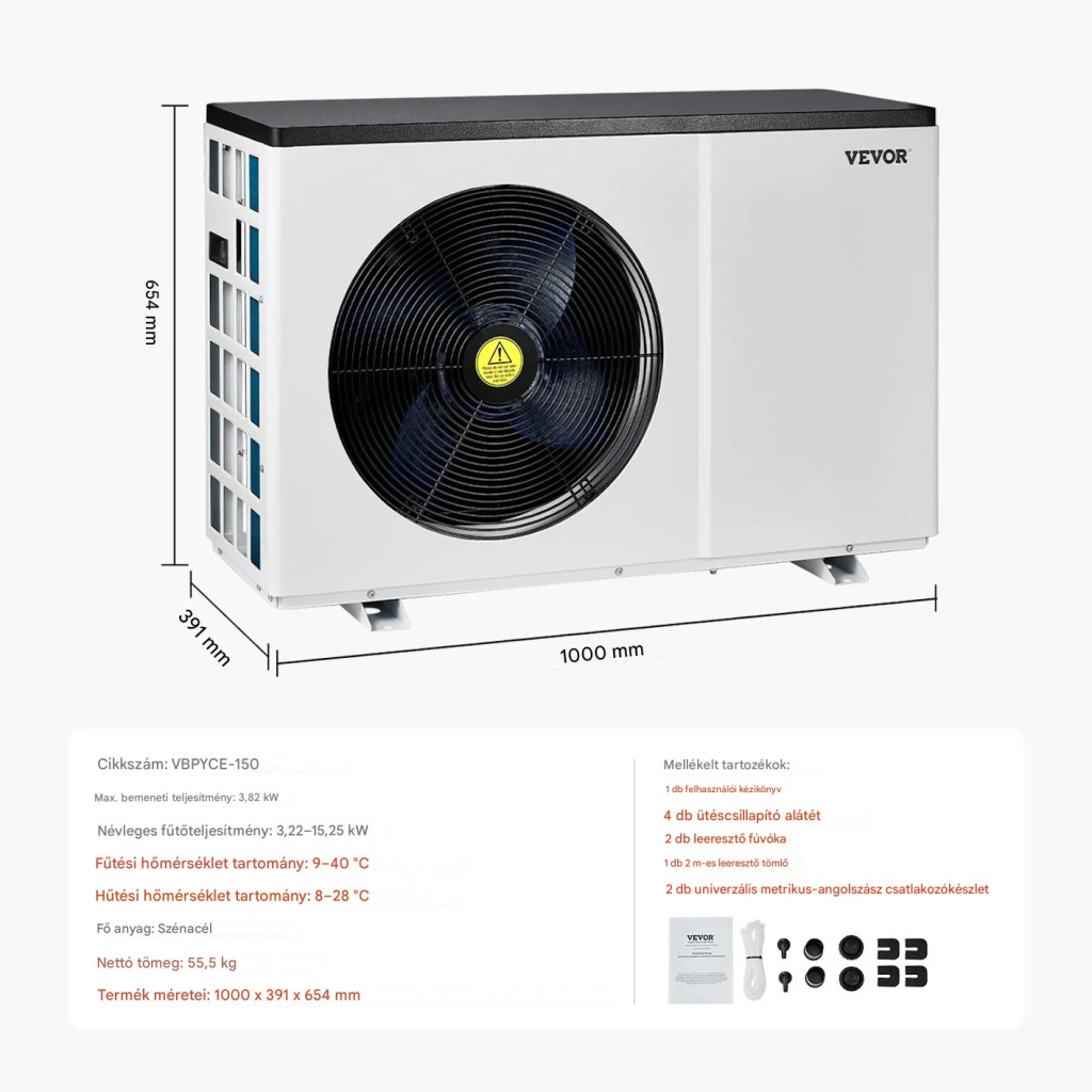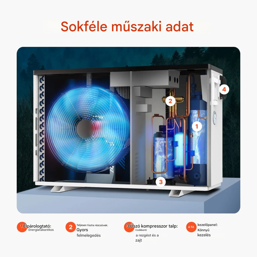 Elektromos medence hőszivattyú 2,51–11,38kW inverteres, fűtésre és hűtésre 15 - 30 m³ medencékhez