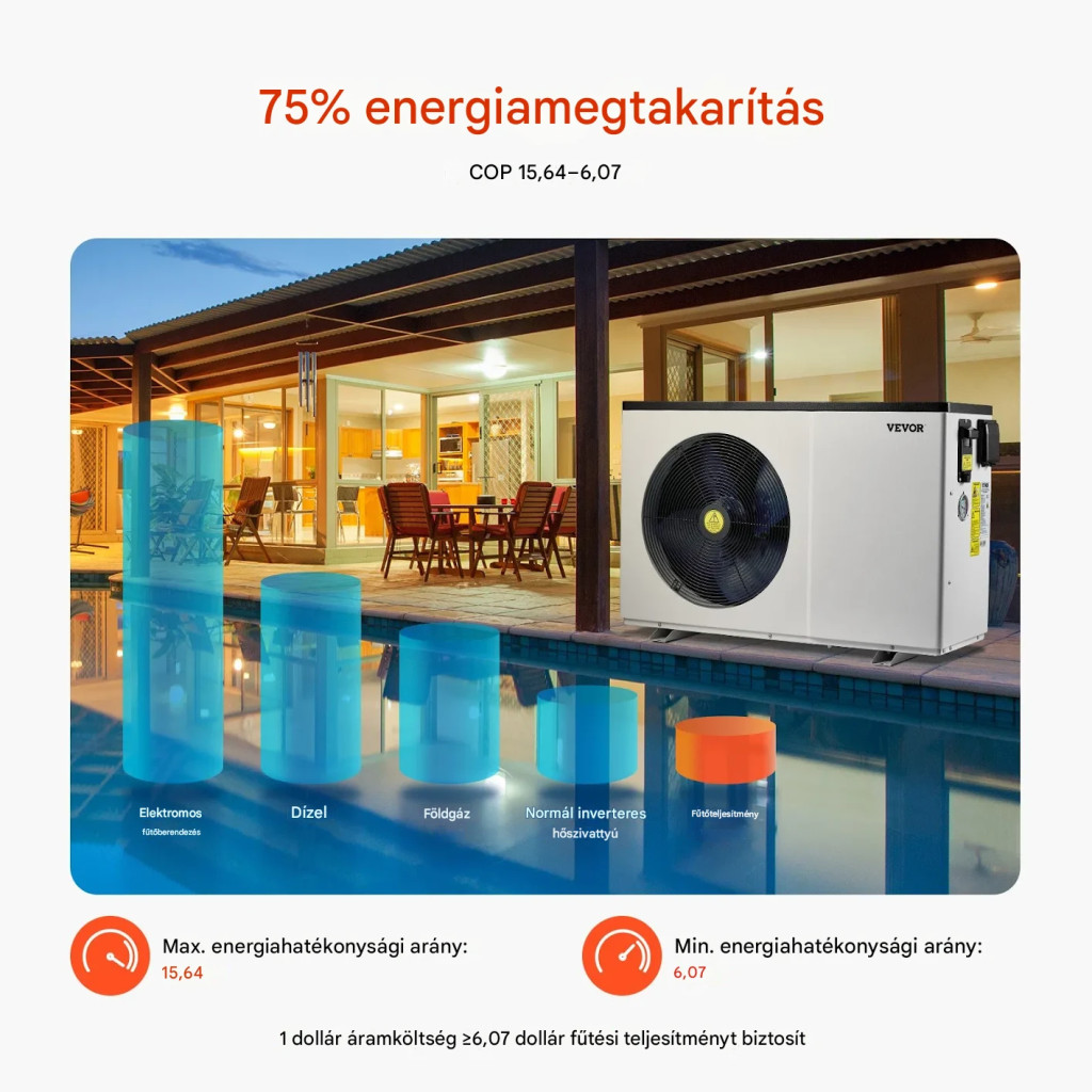 Elektromos medence hőszivattyú 1,48–7,11 kW W, inverteres, fűtésre és hűtésre 15 - 30 m³ medencékhez