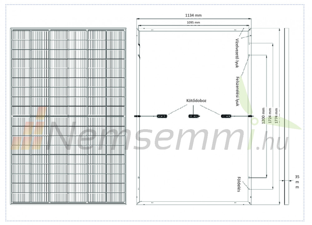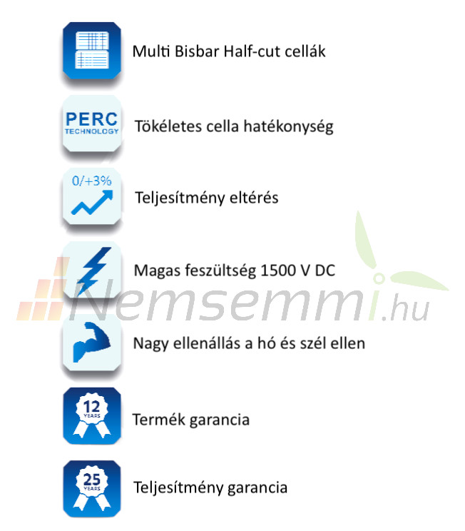 Napelem 38V 440W X-HALF CUT monokristályos 1724 x 1134 x 30 mm Multi Busbar technológia