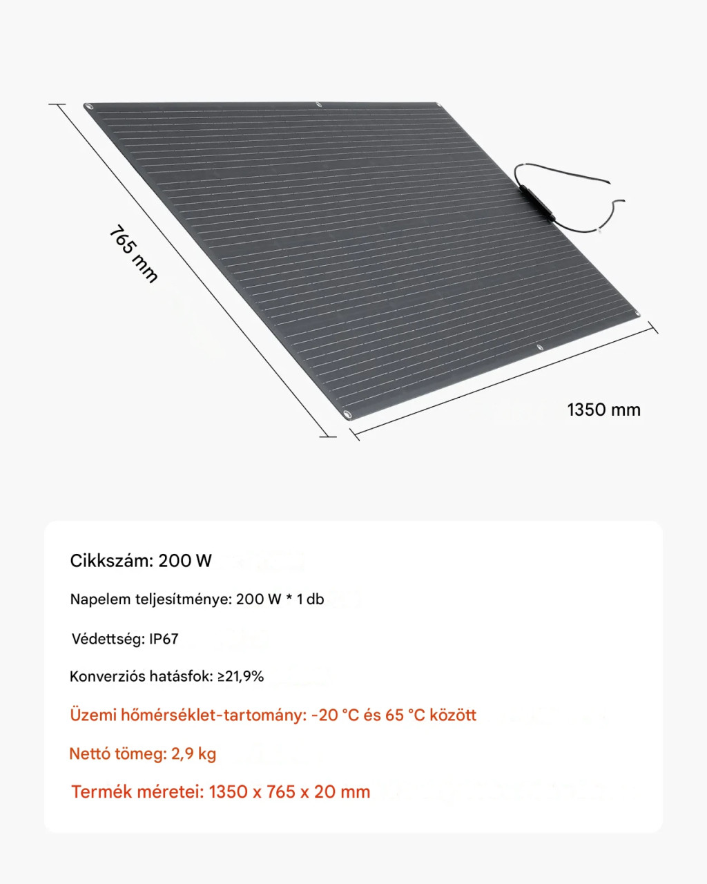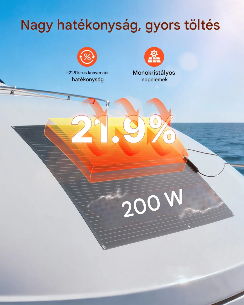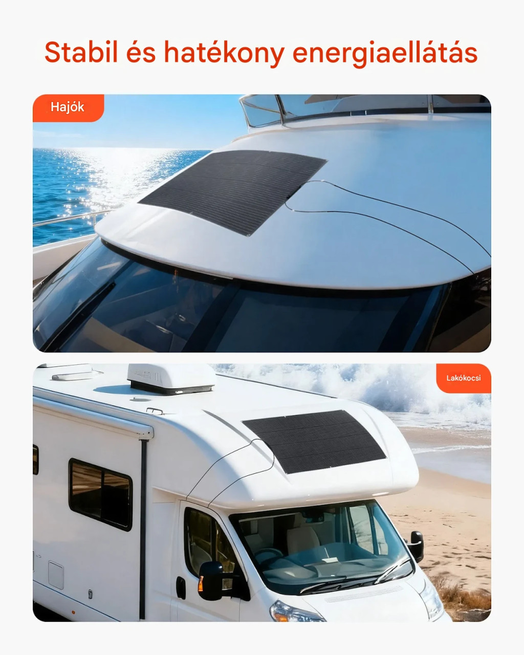 Félig flexibilis monokristályos napelem 200W MC4 csatlakozóval IP67 hajlítható napelem ívelt felületekhez