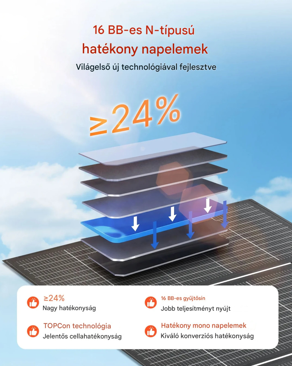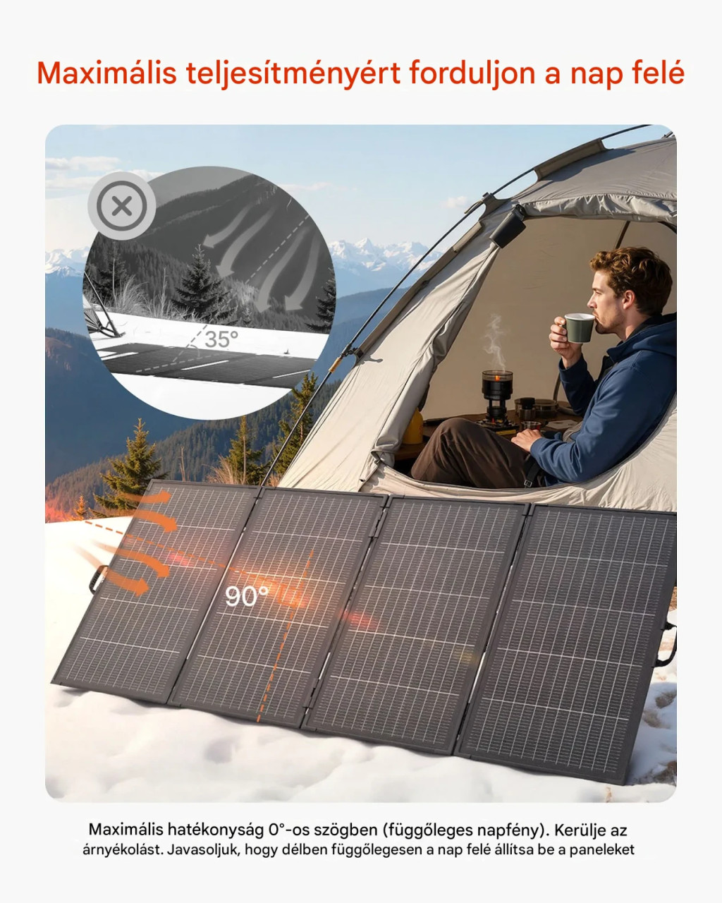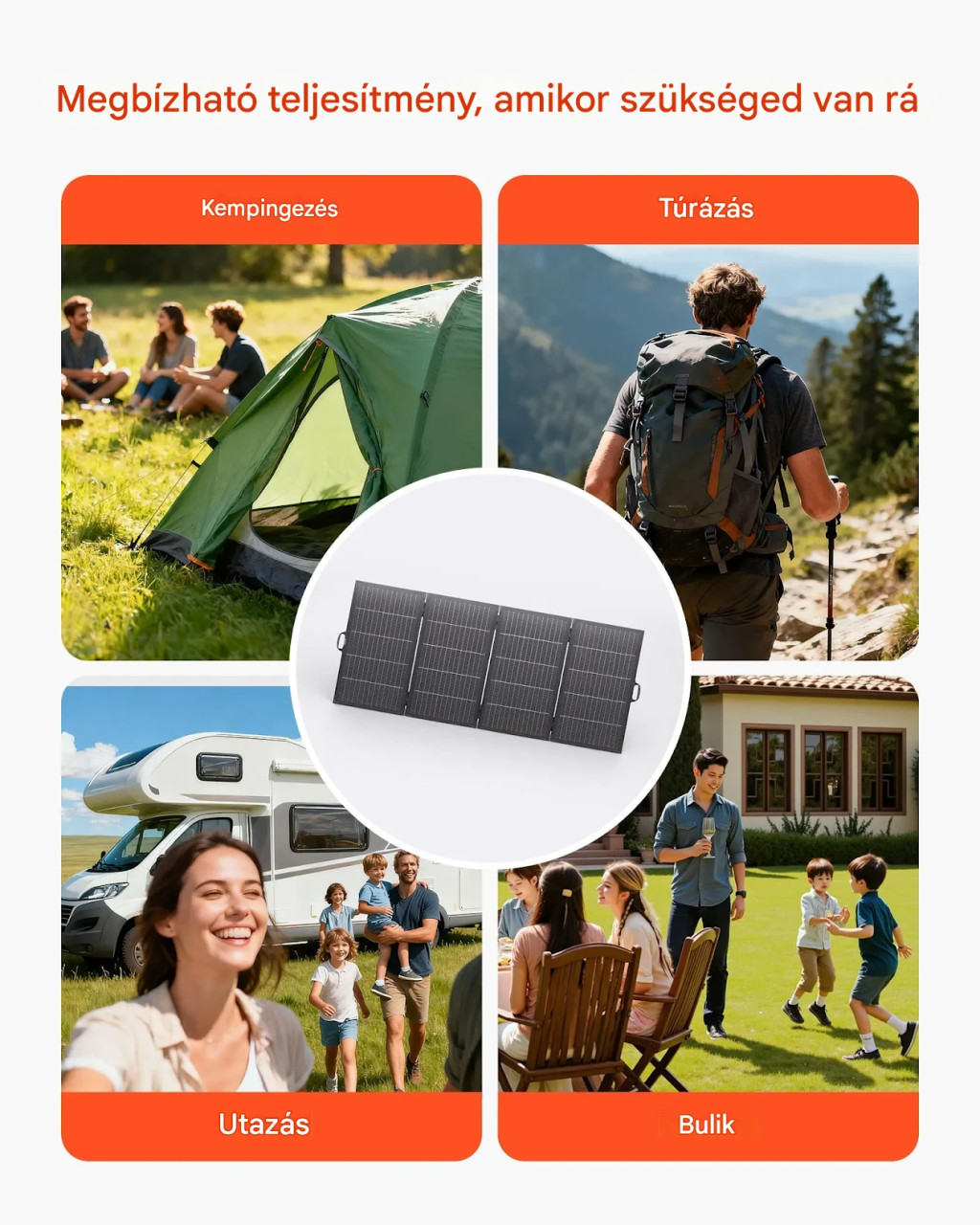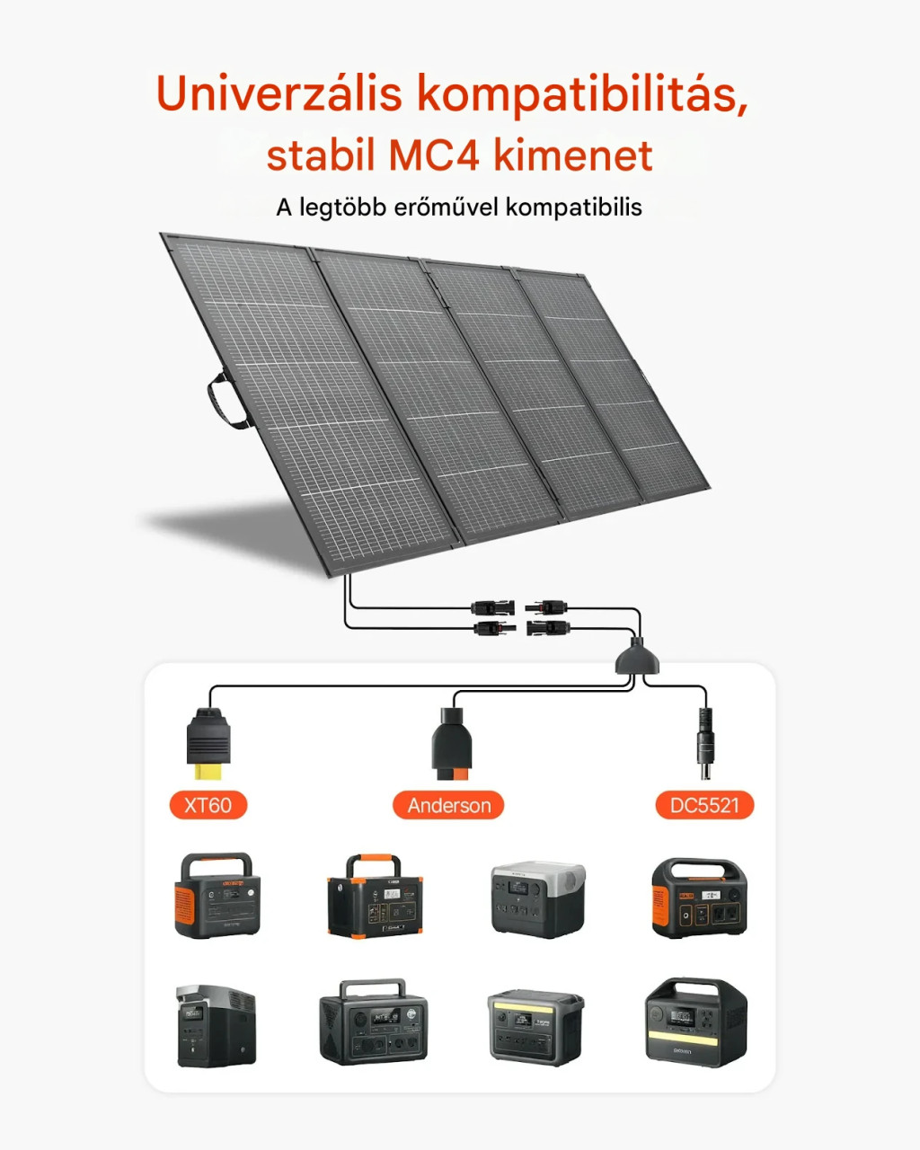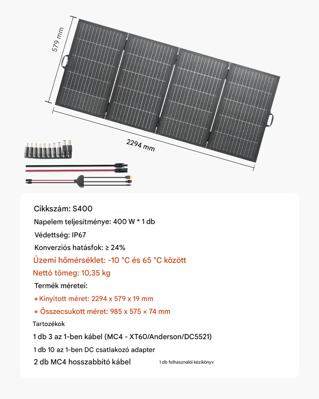 Összecsukható Napelem 400W, 16BB N-típusú Monokristályos Napelem Kerettel, 24%-os Hatékonyság, IP67, Napelemes Töltő MC4 Kimenettel és 10 az 1-ben DC Adapter Erőművekhez, Kempingezéshez