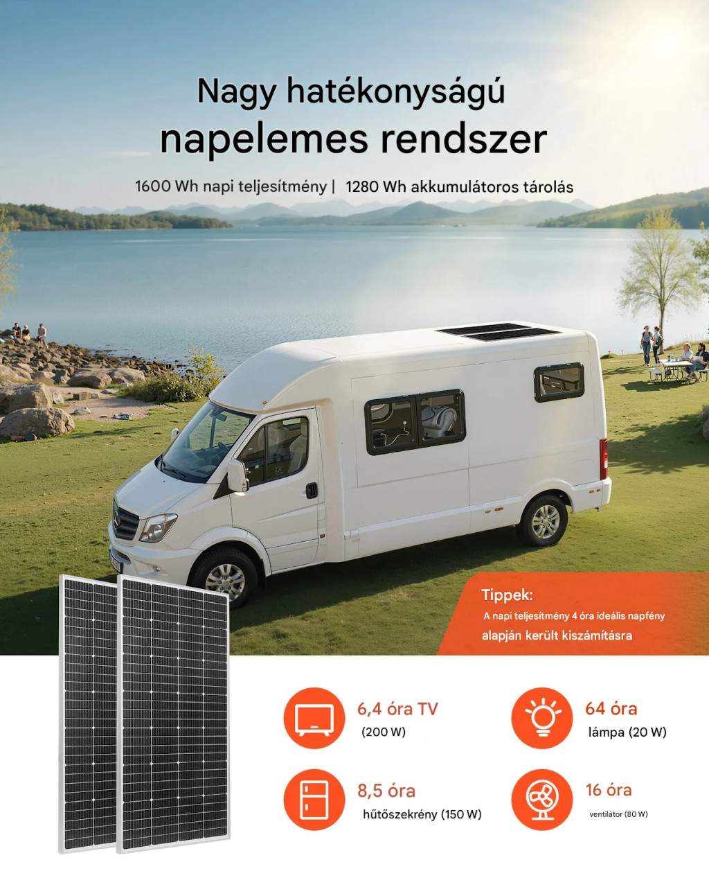 Kiválóan alkalmazható lakókocsiban, hajón, hétvégi házban vagy kempingezés során, ahol fontos a megbízható és önálló energiaforrás.