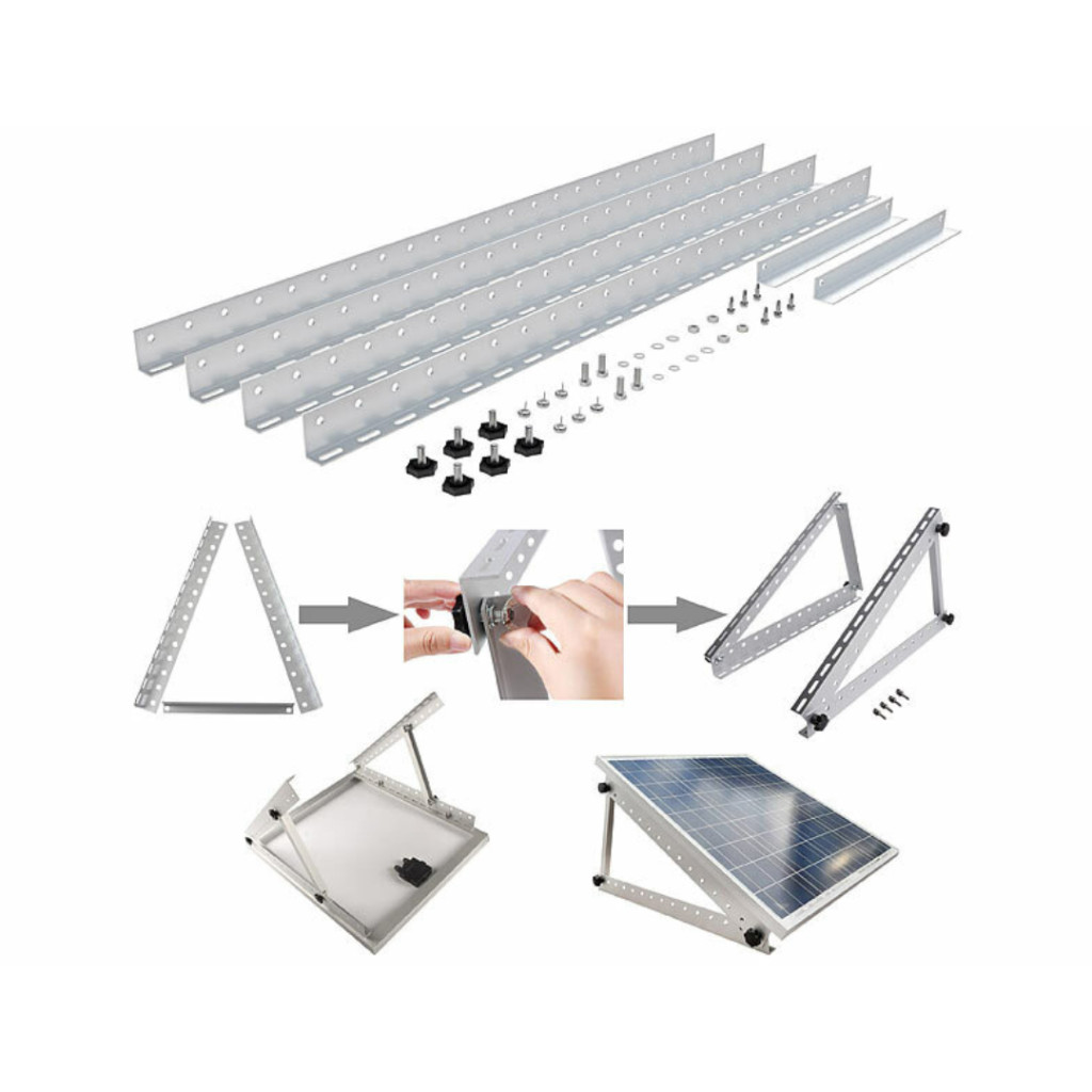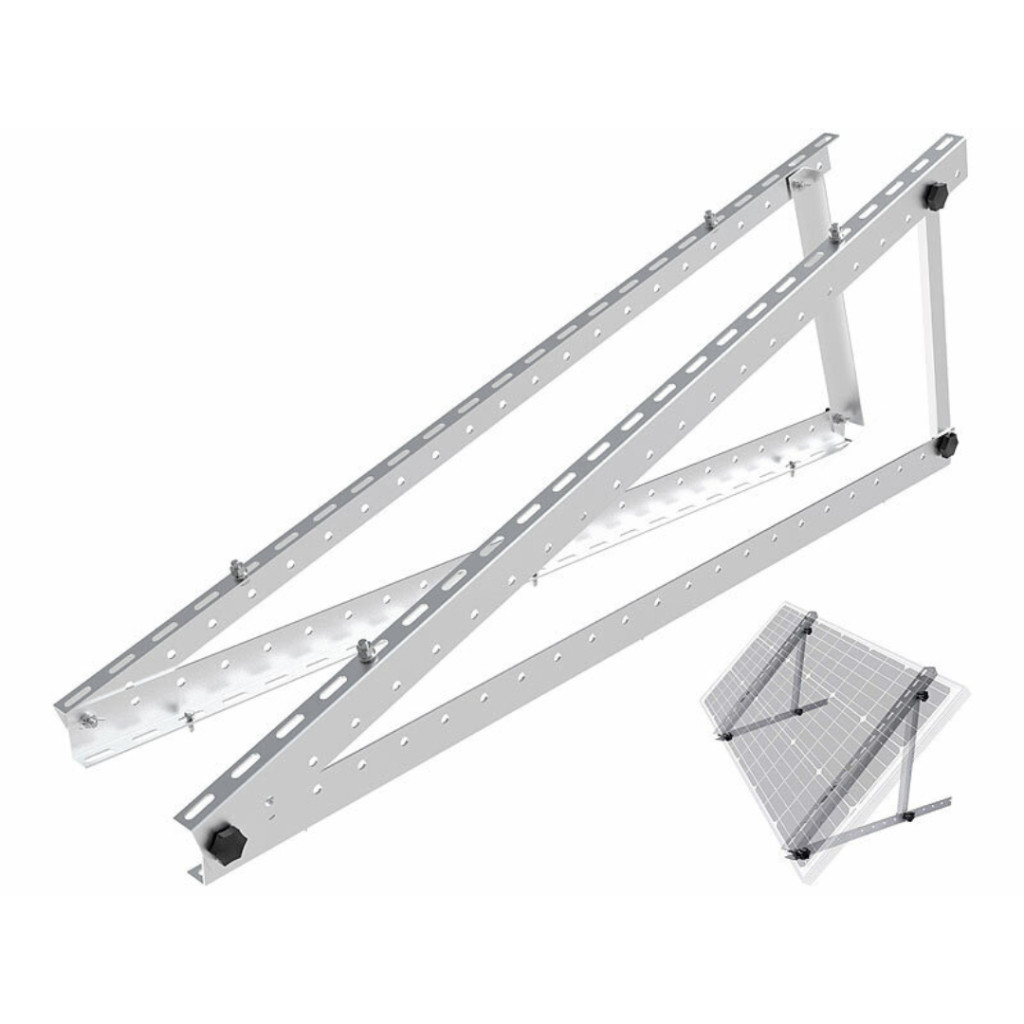 Állítható alumínium napelem tartókeret 118 cm széles, 150 kg teherbírású, dönthető szögállítással hajóra, lakóautóra, tetőre