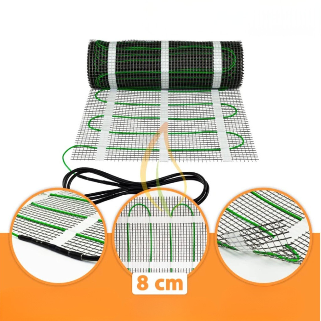 A vékonyágyas fűtőszőnyeg egy árnyékolt, kétvezetékes fűtőkábelt tartalmaz, amely egy öntapadós, rugalmas hordozószövetre van gyárilag rögzítve. A kábelek kiosztása pontosan optimalizált, így a telepítés során nincs szükség további igazításra vagy átrendezésre.