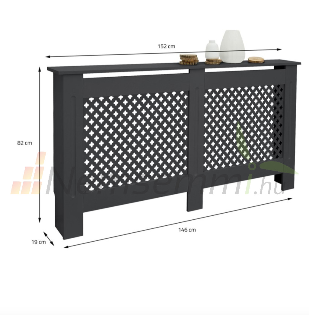 Radiátor takaró burkolat 152x19x82 cm fűtőtest burkolat antracit mintás radiátorburkolat, fűtőtest burkolat