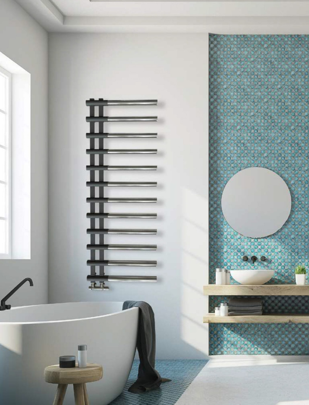 Színes design radiátor - Radox Linx Mixt 1136x500 mm fekete-króm törölközőszárító fűtőtest törölközőmelegítő