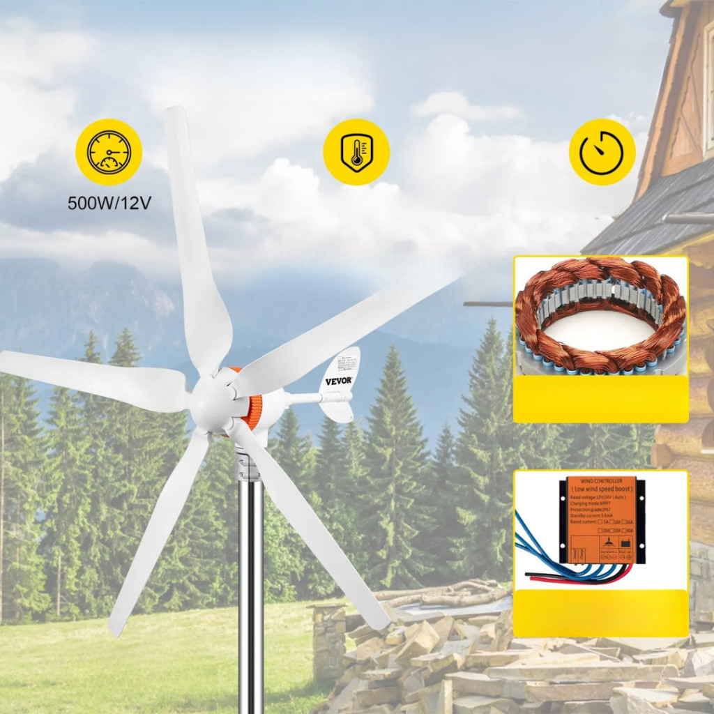 Szélturbina generátor 12V 500W MPPT vezérlővel, 5 lapátos szélgeneráto