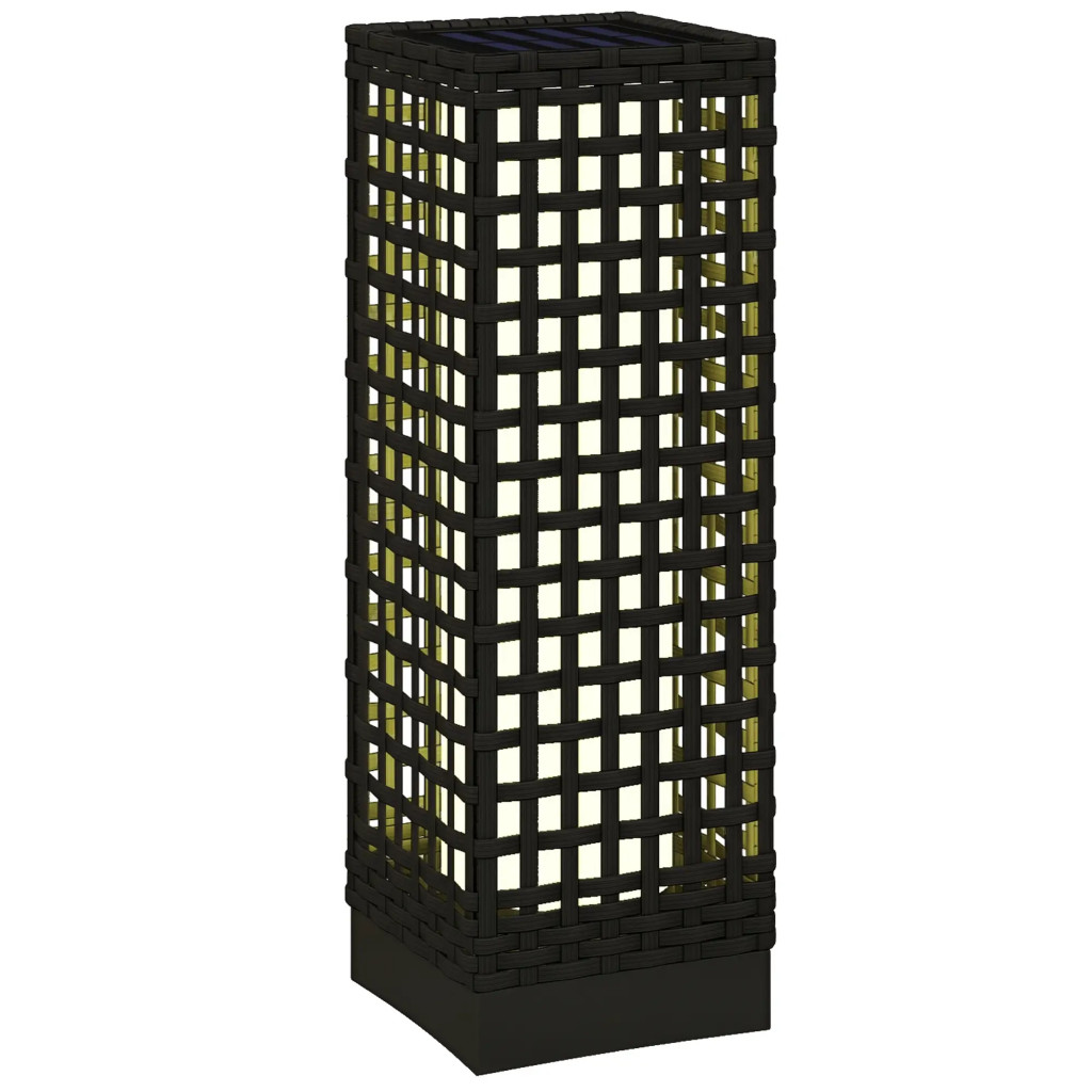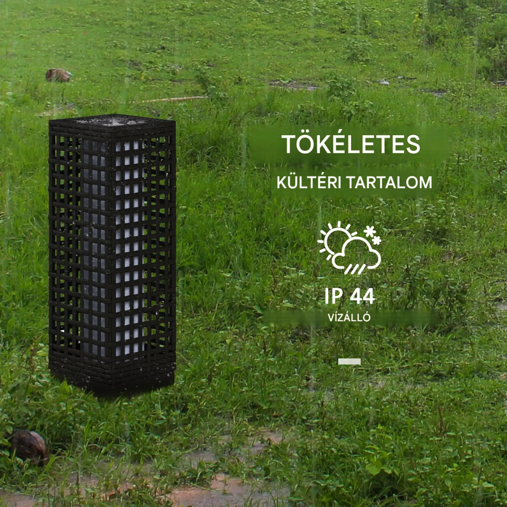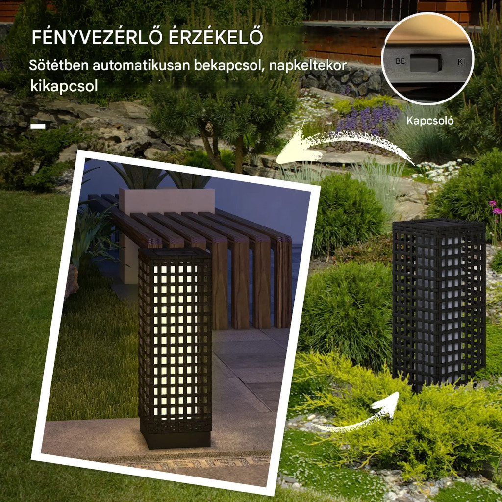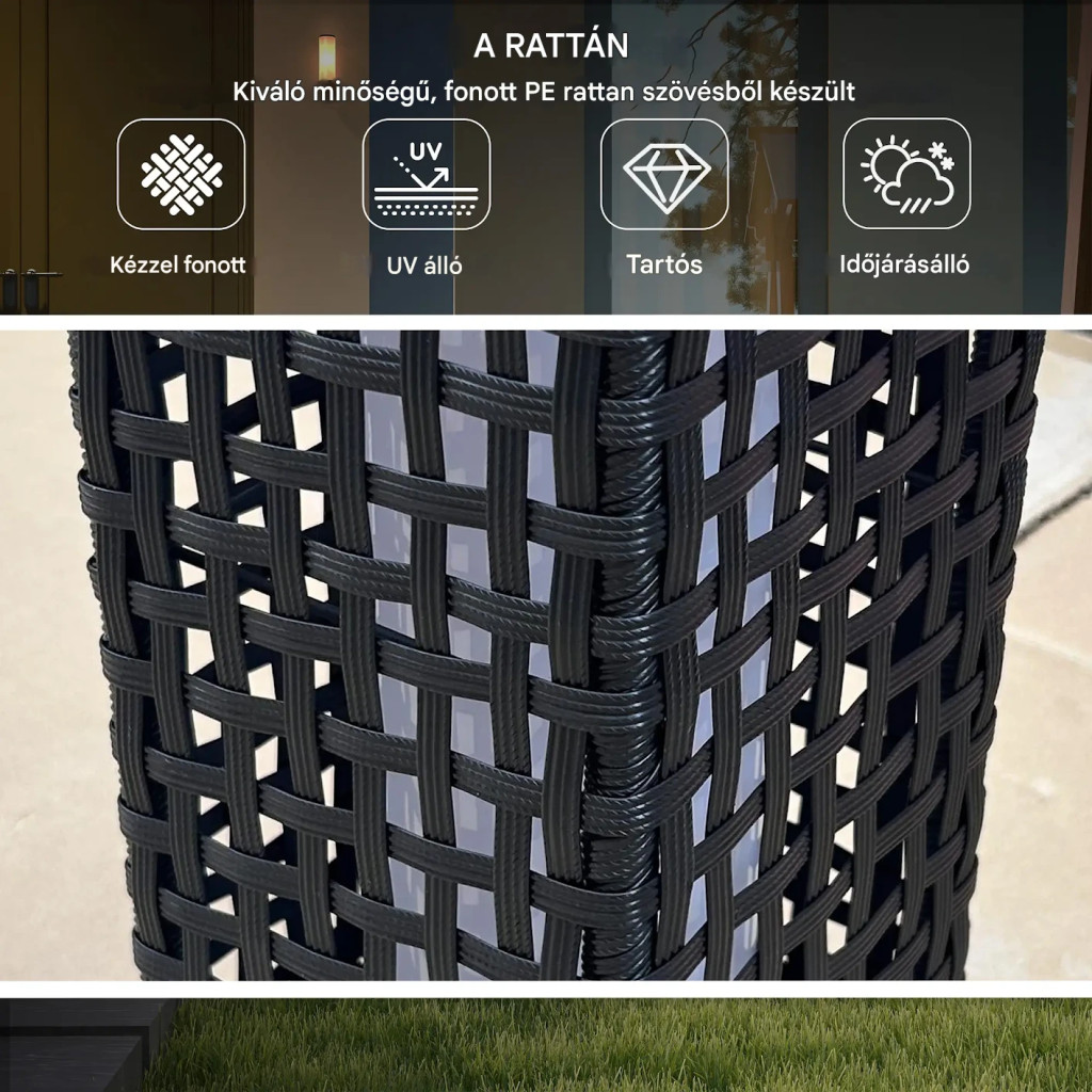 Napelemes rattan kerti lámpa – fekete kültéri állólámpa meleg fehér LED fénnyel
