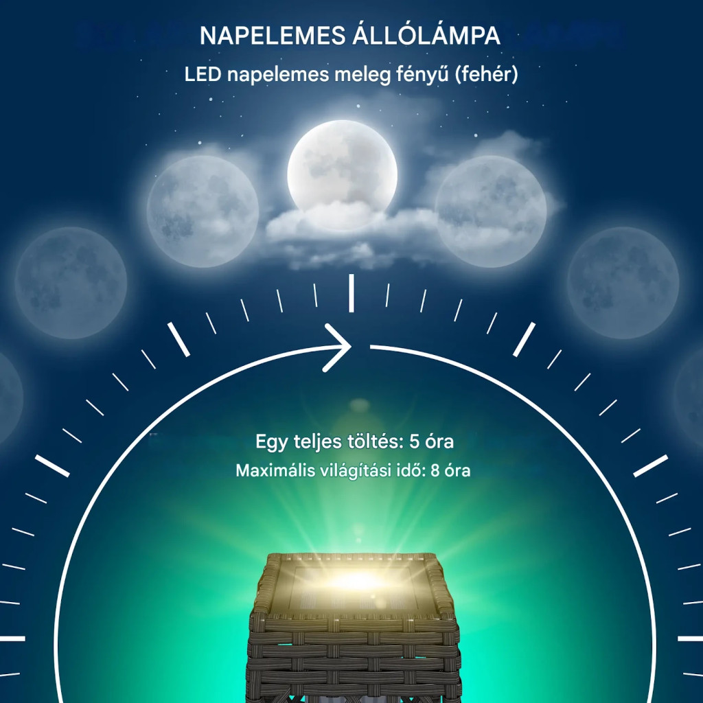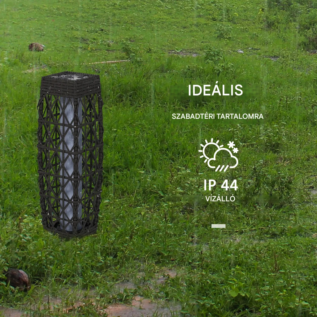 Ez a napelemes rattan állólámpa tökéletes megoldás mindazok számára, akik energiatakarékos, automatikusan működő és esztétikus kültéri világítást keresnek.