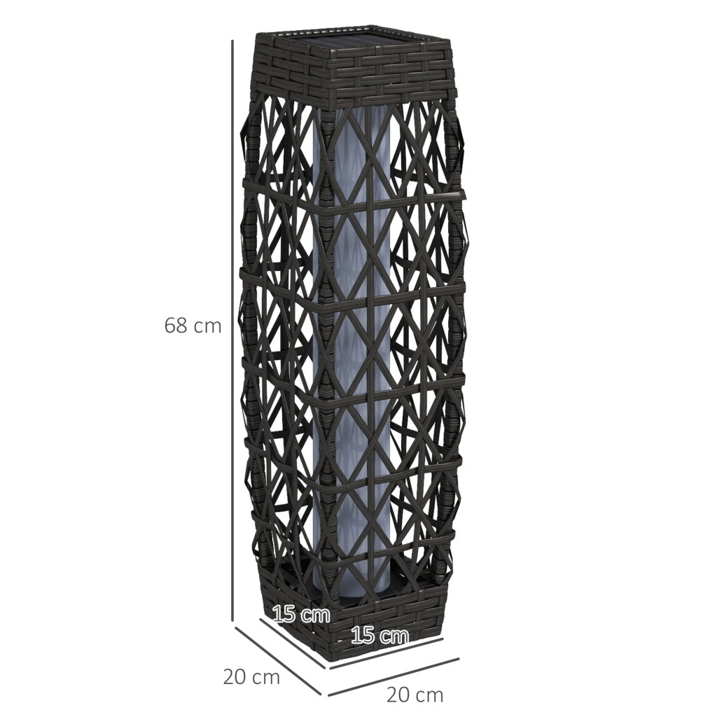 Ez az elegáns napelemes rattan kerti lámpa tökéletes választás, ha hangulatos és dekoratív világítást szeretne kültéri környezetében. A fonott rattan hatású lámpaernyő különleges fény- és árnyékhatásokat hoz létre, így egyedi atmoszférát teremt kertjében, teraszán vagy verandáján.