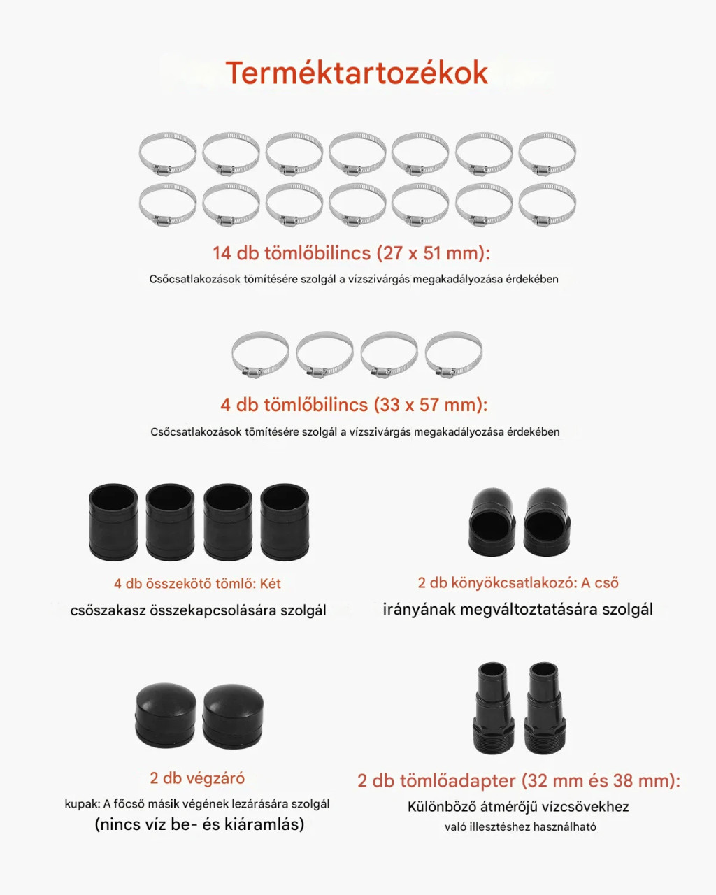 • Tömlőadapter: 32 / 38 mm
