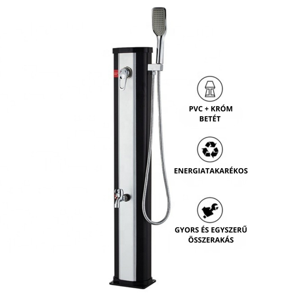 Szolár zuhany 20 literes félmagas, keverőcsappal zuhanyslaggal és zuhany rózsával. Szolárzuhany