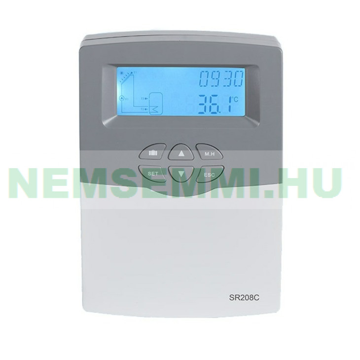 1 db SR 208C Szolárvezérlő 3 db hőmérséklet érzékelővel, LCD kijelzővel, biztonsági funkciókkal